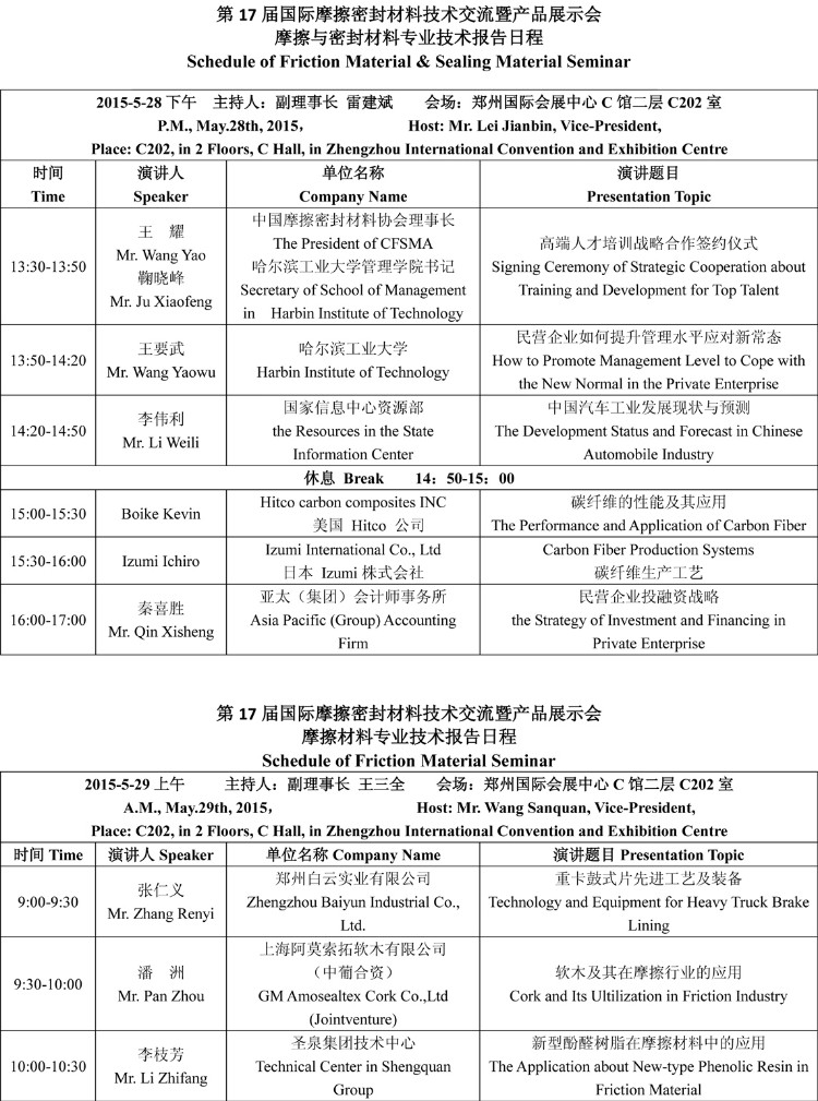 第17届国际展会技术报告日程(摩擦与密封/摩擦)